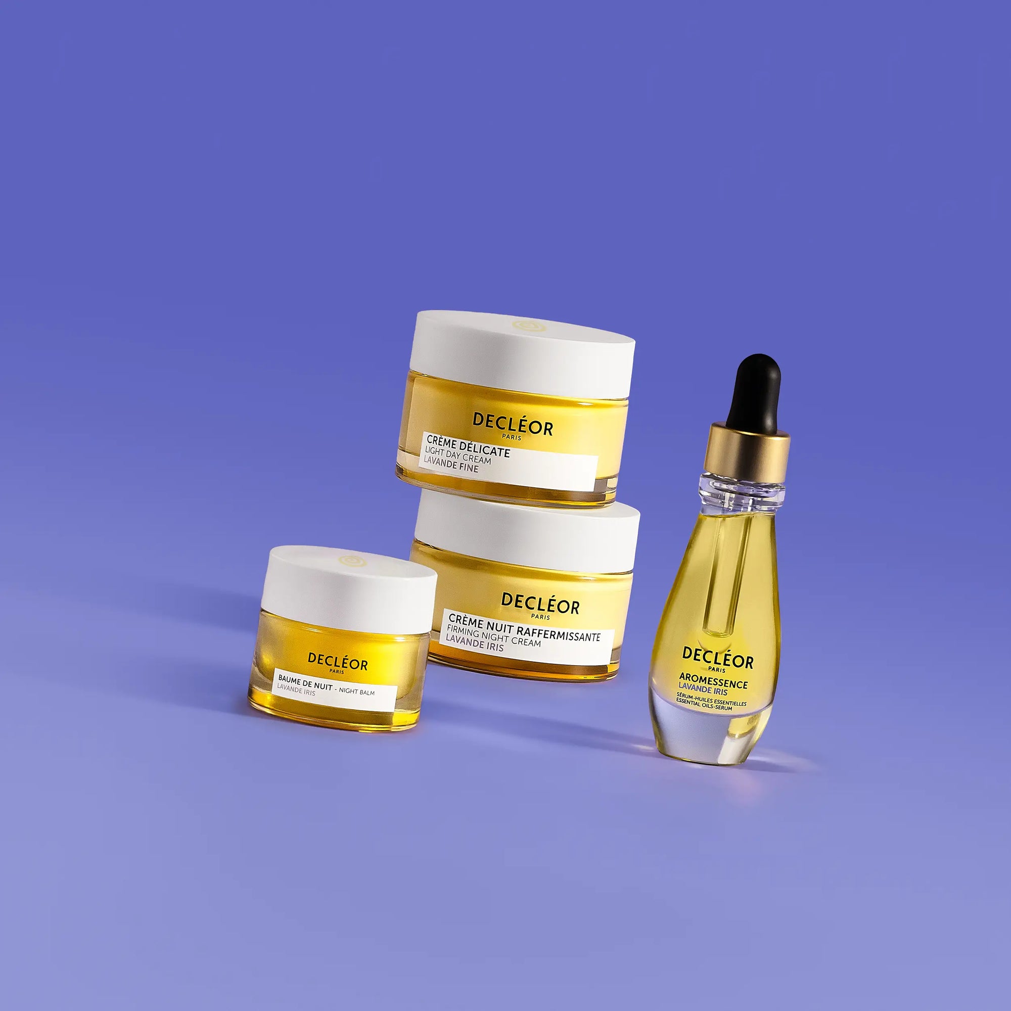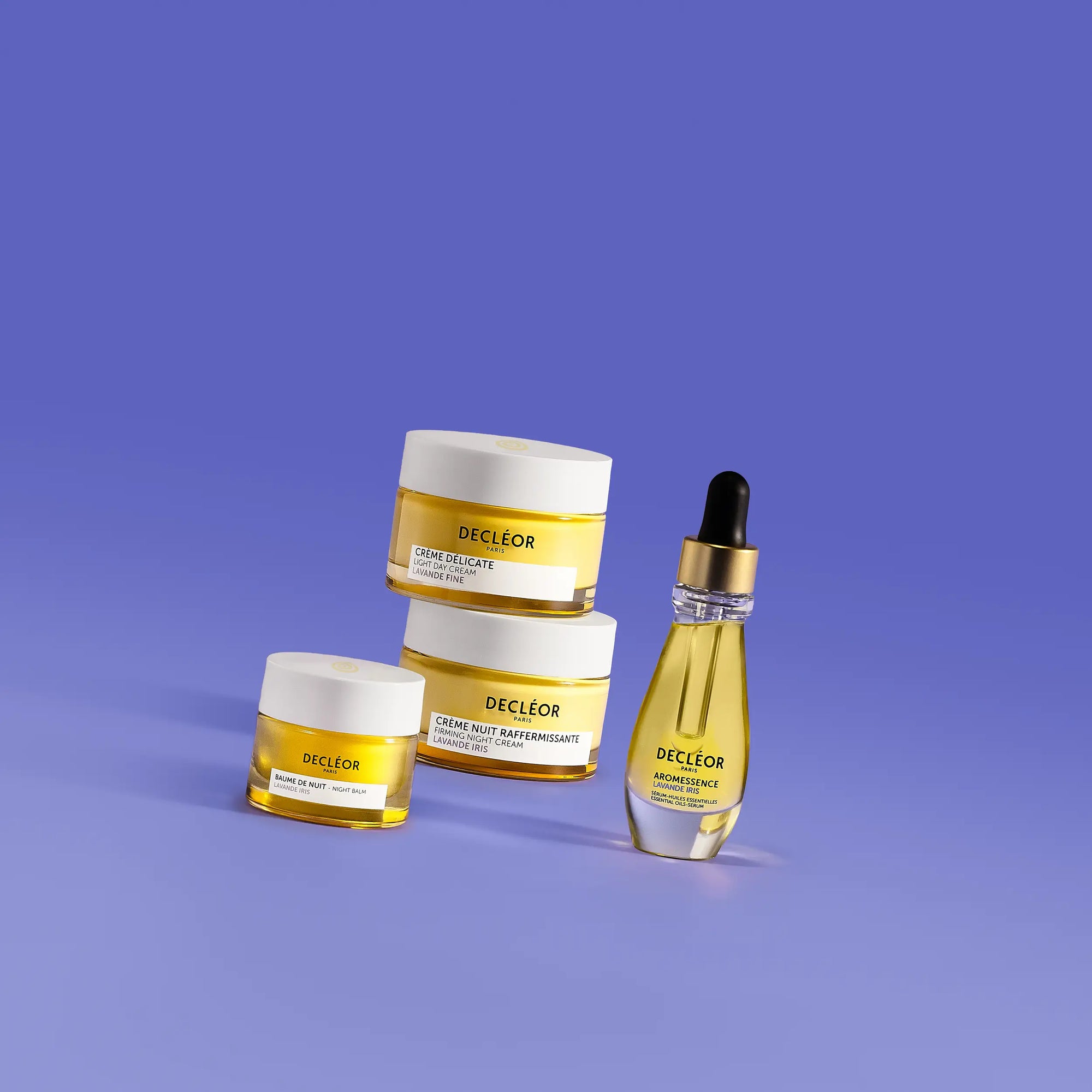 The Lavender Iris range helps smooth wrinkles and fine lines, firm the skin, and restore its radiance. Enriched with Fine Lavender essential oil, known for its firming properties, and revitalizing Iris extract, its formulas diminish the signs of aging while strengthening the skin's firmness and elasticity.